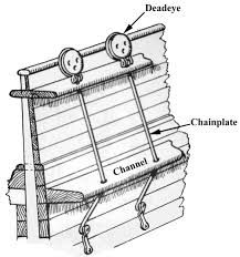 Chain plate – A chain plate is a metal plate used to fasten a shroud or stay to the hull of a ship